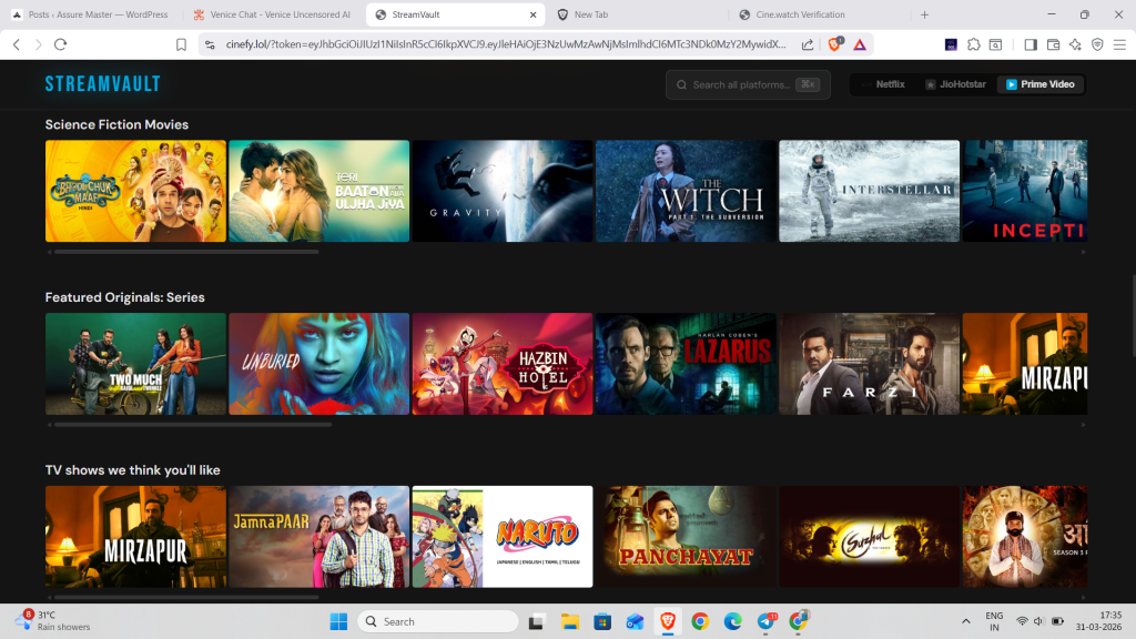 - JioCinema – Free platform with good content library, though primarily focused on Indian users. May have regional availability limitations.